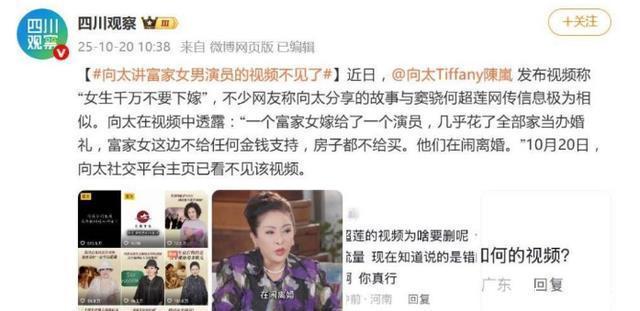 可是这次不一样,她谈论的话题直接登上了热搜前排。 向太在18号的时候发布了一条视频,而主题则是关于明星的婚恋问题。 其内容之炸裂,被网友辣评道: 这是可以说出来的吗?